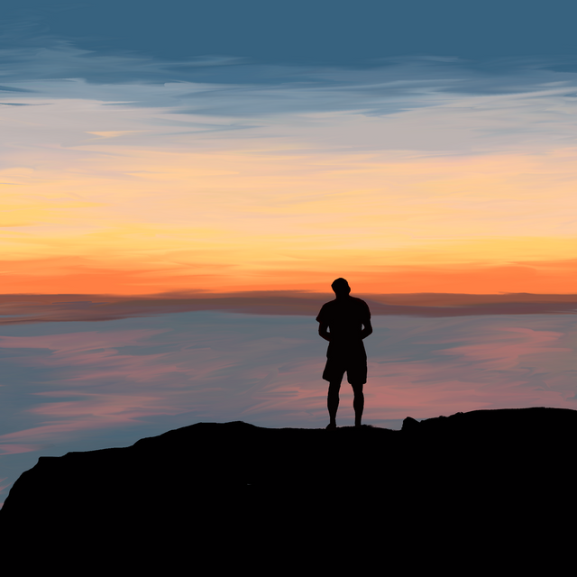 #expedition #adventure #adventurer #clearsky #digitalart #digitalpainting #landscape #mountains #mountainscape #orangeyellow #shadow #shillouette #sunset #warmcolors