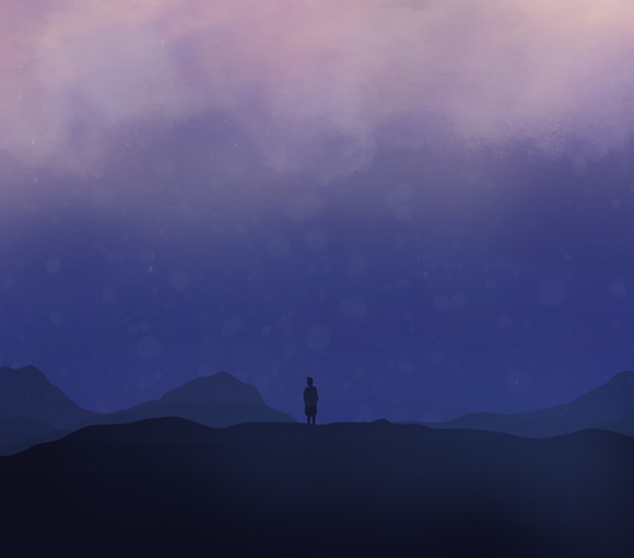 Here is painted a adventurer with a backpack on his back, gazing at his next expedition.This piece is actually a more significant milestone for me, as it led me to focus more on painting mountains and this style of digital art in general.