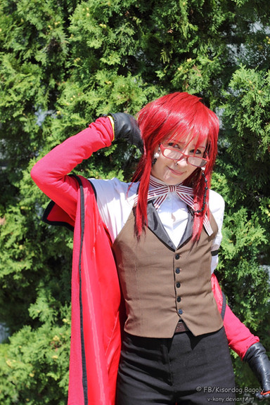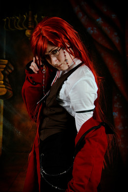 New cosplay photo of my favorite Grell cosplay. :3My wig has seen better days....time to replace it.