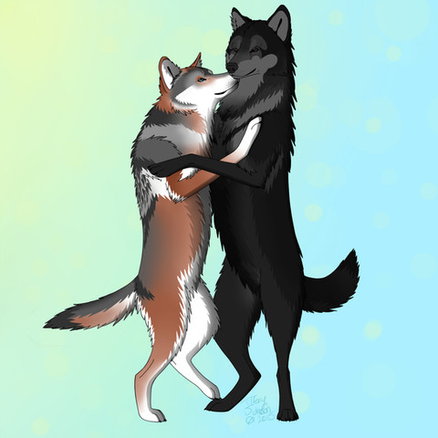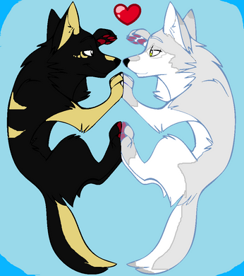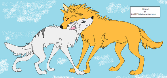 ***I DO NOT OWN THE LINEART. FIREWOLF-ANIME DOES!!***I felt like making this. It's one my my new wolf OCs, Reece (the golden one), and her crush Flint. :3 Welp, might as well give ya a story.