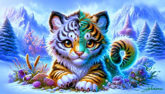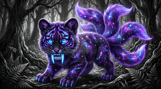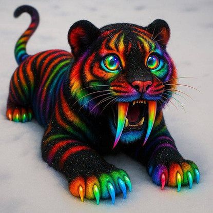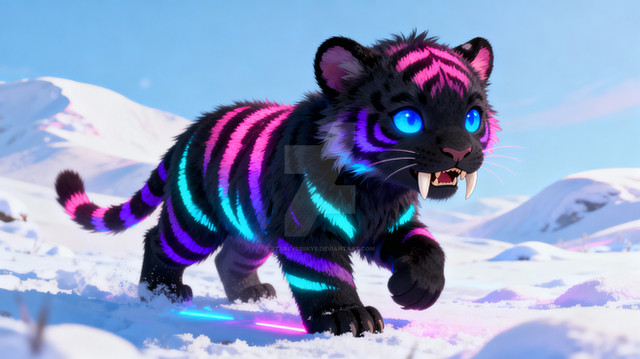 #animal #tiger #digitalart #feline #neon #cartoon #magic #fantasyart #cat #awesomeart #babyanimal #cub #cuteadorable #desktopbackground #desktopwallpaper #exclusive #fluffy #glowingeyes #kawaii #kitty #prettybeautiful #sabertoothtiger #snowylandscape #wallpaper #coolartwork #exclusives #exclusiveart #exclusiveadoptable #exclusiveadopt #ai_generated