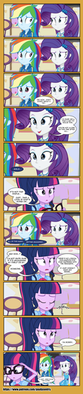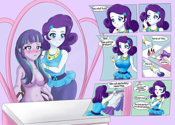 This is a request for . The request is about Rarity giving Applejack and Rainbow Dash a make over. I made it into a short comic because it was more easy and I thought it would make a funny comic myself.I do not own Equestria Girls or the character and pictures