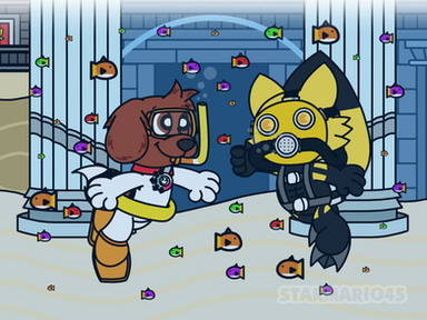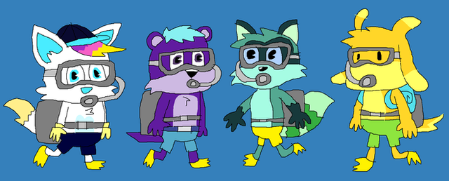A request from of his oc's Crafty, Nikos and Canyon scuba diving.Here you have it dude!