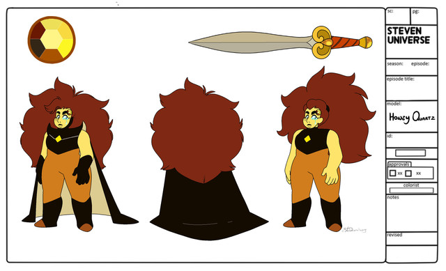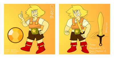 Info: She is Honey Quartz's left hand gem and Honeycomb Quartz's right. Despite her lustful love of mischief that typically involves her dear topaz