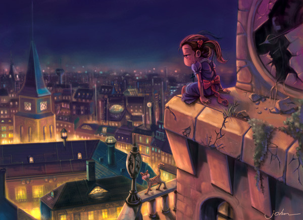 Ahh this is such a beautiful painting. great work with shadows and that sky <3