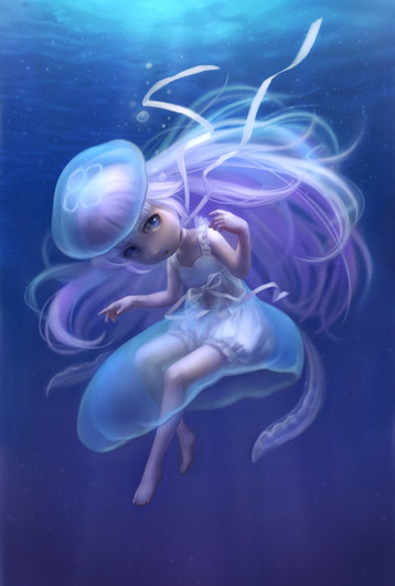 Gorgeous work! I love the concept and the perspective. Such a cute background. The jellyfish look wonderful and I really like the detail in the stair. Cool coloring!