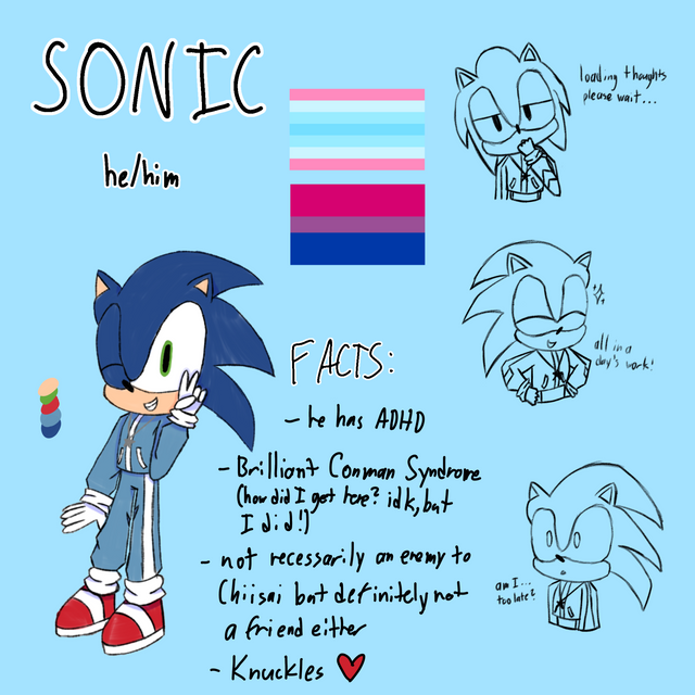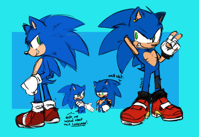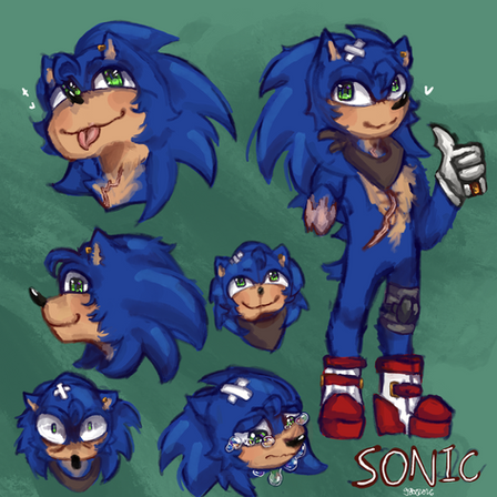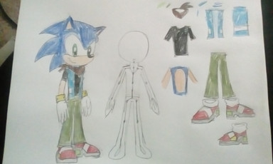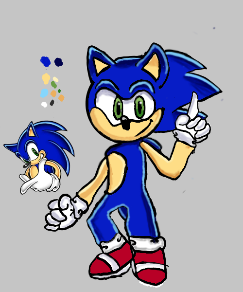 Hi guys! Sorry for being lazy! So here's this pretty cool redesign I've thought up for Sonic!It doesn't say, but the bottom of his shoes are also grippy and stuff too.