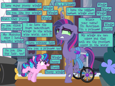 Scootaloo, "They're fighting over DIAMOND TIARA? Ya know for fillies of such 'refined tastes' you girls sue are scrapping at the bottom of the barrel."