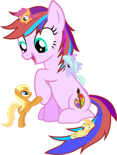 My ponysona, Star Splatter in my own style. As my style is more diverse, I got to depict myself more realistically (IE; i'm a giant chubby doofball) and... uh, the hooves. See, I have OCD, and.... I pick at my feet and toenails. A lot. So much that sometimes they bleed. Sometimes I rip off my toenail, or leave my foot bruised red for weeks. And so, yeah... she has chipped hooves, picked at and worn. Her leg also has three scars.. well, they're not cutting scars, they're from scratching at myself until i bleed, or in one case, bitten.The cloven hooves comes from that I draw my dad as a unicorn. The tailfeathers come from my aunt, who I based Feathermay off of, and would draw her as a pegasus. The feathers are intentionally drawn to resemble duck feathers (well, as much as my crappy art can make them resemble duck feathers DX).