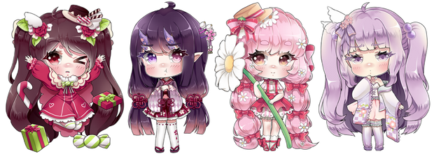 Just some lineart adopts by m1lk-n-hunny that I've adopted and now colored! They don't have names yet. I really enjoyed choosing their palettes and coloring them!The first 3 are mine. The last one is BoiledHard 's.