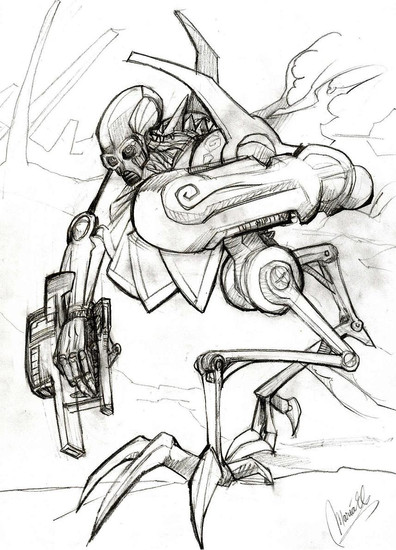 Reminds me of a mechanoid from Metroid Primer Echoes. Luv the description.