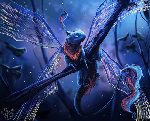 It's a nice one alien life form. Certainly, I love that sleek glittery skin of this creature and wings are pretty unusual. BTW, great job with background - the rocky(?) ground and that shiny star-like thingy are impressive