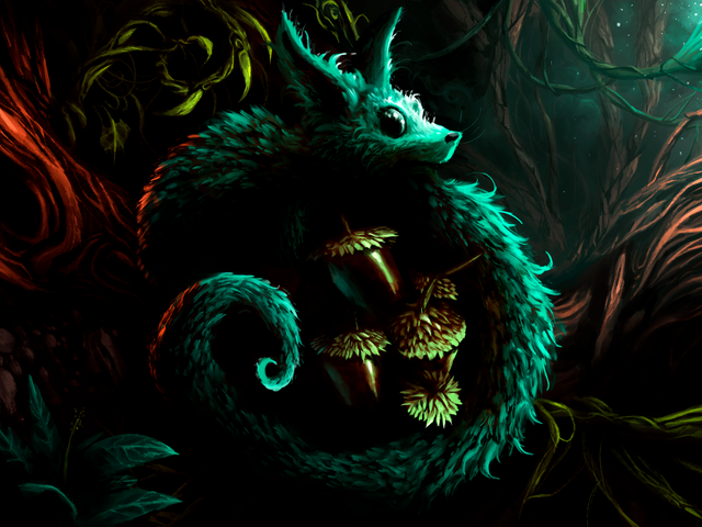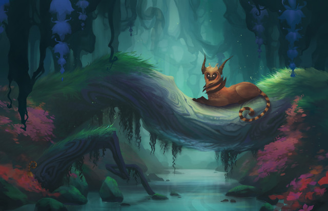 #beast #color #creature #firefly #fur #joy #light #manticore #night #shrooms #snail #tree #warm #caterpillar #characterdesign #digitalpainting #illustration #photoshop