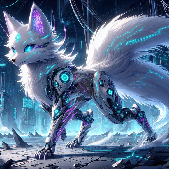 #animal #cyborg #dark #death #fantasy #fox #kitsune #love #mecha #painting #purple #robots #techno #art #dalovedeathrobots #daldr #characterdesign #darkart #dream #mythical