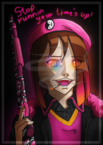 #gun #digitalart #fanart #originalcharacter #sniper #3eyes #bullets #bulletshells #fingerlessgloves #laces #purplehair #purplejacket #rifle #shoes #shorts #thighhighs #tophat #turtlenecksweater #brokie #thickthighs #discoloredeyes #issbrokie #opperstopper