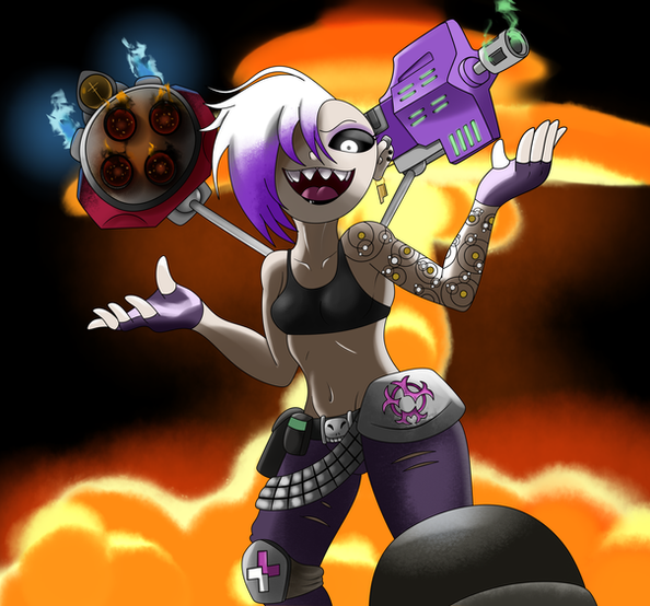 #digitalart #fanart #originalcharacter #robot #gun #4arms #6eyes #clouds #eye #graffiti #hammer #heist #machine #middlefinger #robotgirl #runaway #shotgun #sun #tentacles #truck #7eyes #police_car