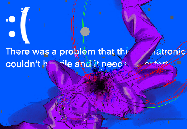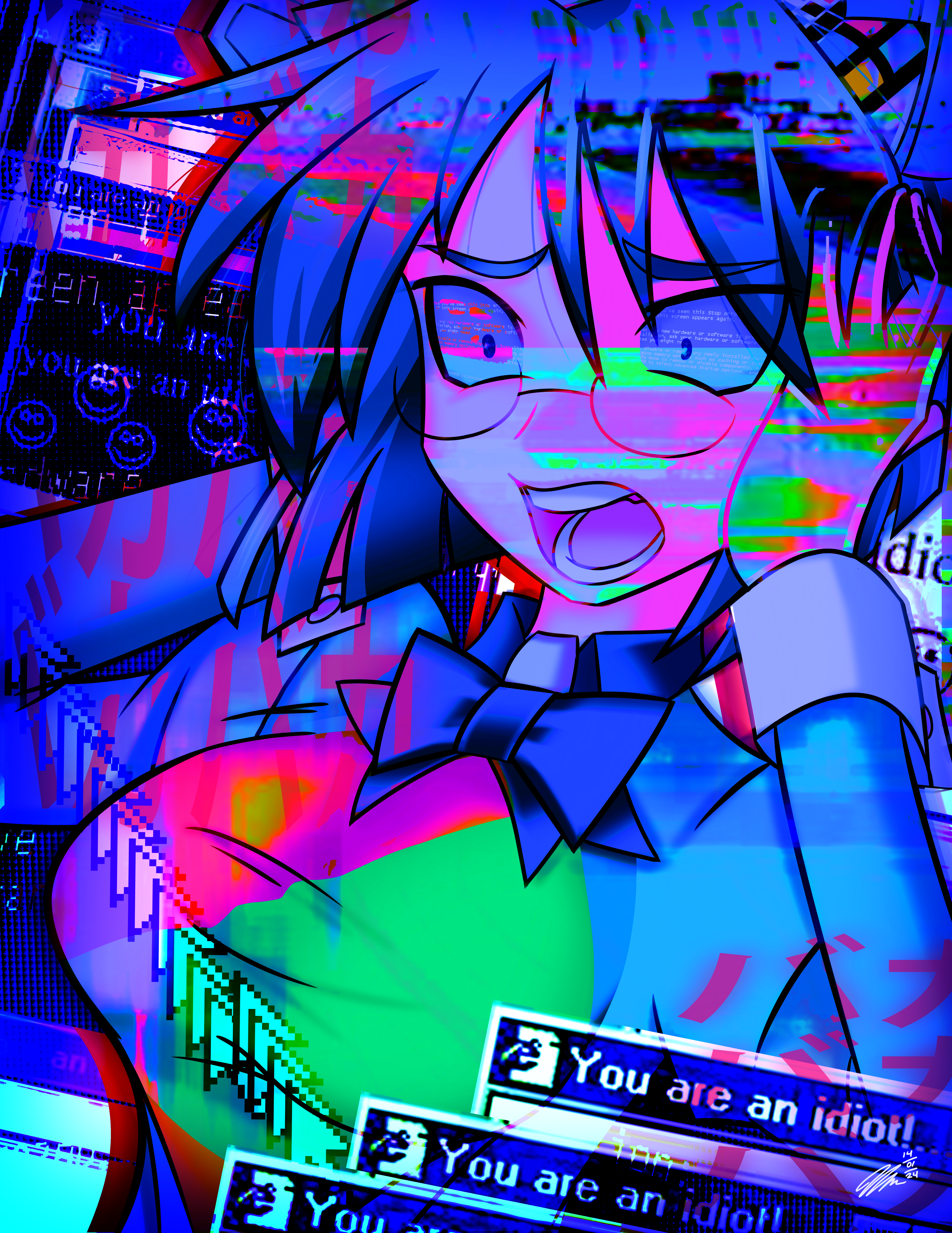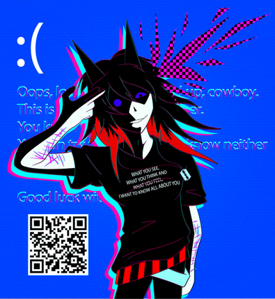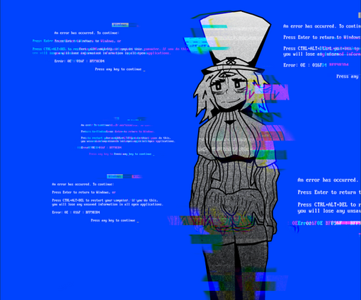 #originalcharacter #digitalart #fanart #animegirl #bluescreenofdeath #bsod #error #errormessage #glowing #jacket #machine #mechanical #robot #static #thighhighs #tophat #turtlenecksweater
