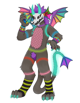 He's gotten a very slight redesign but I didn't want to change too much about him, keep him true to essence. Biggest changes were I moved the rainbow horns so they aren't behind his ears & I gave him raccoon-tail highlights in his hair :'D