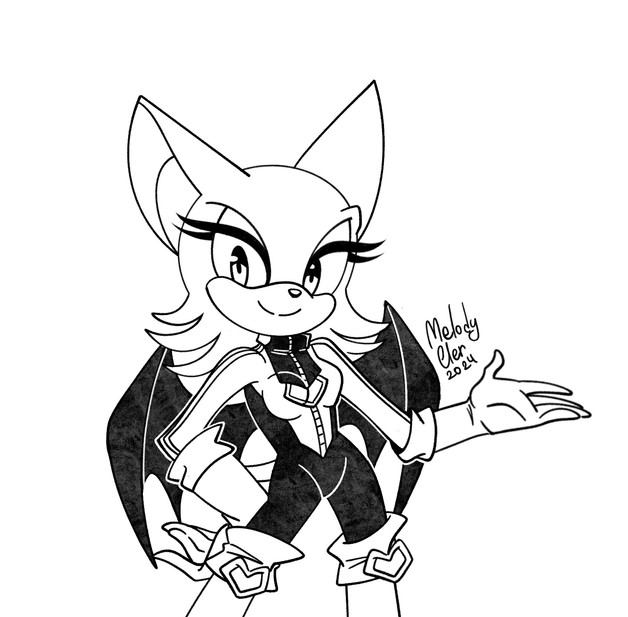 #drawing #fanart #gaming #lineart #blackandwhite #rouge_the_bat #sonicadventure2 #sonicthehedgehog #videogames #sonic_fanart