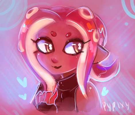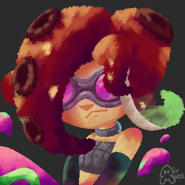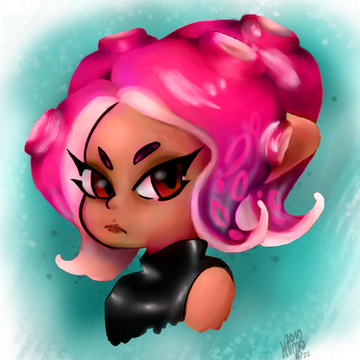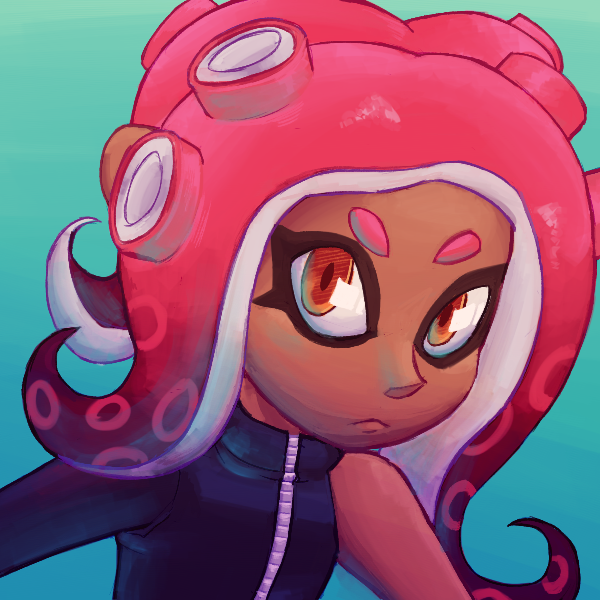The Splatoon art I have seen around has expectedly been dominated by inklings, but I have not seen too much art, if any, of the different vendors, Judd or the octarians/octolings. As I told you, I like surprises, so to find one of these characters in my inbox, as well as it was dedicated to me! It just made me super happy.