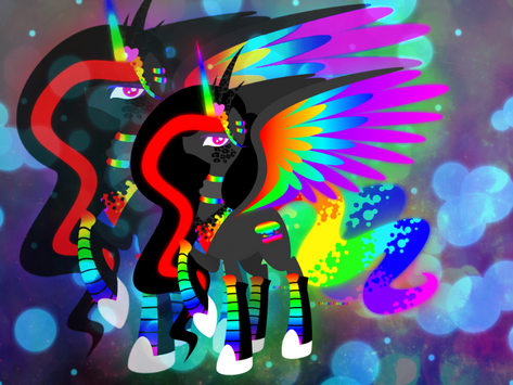 Ah, yes. The infamous Neon Boom. Unoriginal modern 3edgy5me OC who runs a city of perpetual partying. So, essentially, pinkie pie combined with most modern american teenagers on every drug ever made, with a rather crap "NEONISHKEWL" color scheme. Has anyone ever heard of the magic known as a saturation meter? It is trying too hard to look cool, resulting in it seeming too artificial in a bad way. The neon rainbow hurts my eyes to look at slightly, likely due to the stark contrast between colors that bombards my eyes all at once. That's all without looking too deeply at the backstory, which is just a slightly different version of every alicorn and princess OC ever made. Random princess has a kingdom that doesn't show up in the show, with inhabitants which are different in some obscure way from Equestria's own, with a pair of royals related by blood. I am sick and tired of this piece of crap. I acknowledge this OC is not yours. 7/10 design, 2/10 color scheme, 1/10 backstory.
