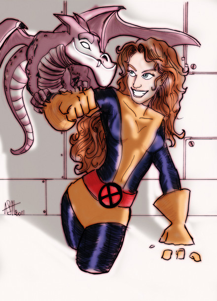 Here is a sweet Kitty Pryde/Lockheed piece drawn by a cool guy, Wayne Nichols and colored by me.Thanks for looking!