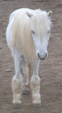 it is a 30-something y/o mini cross that used to be at teh barn...she wouldn't let us shave her legs...so she had the leg warmer look of the 80s going on