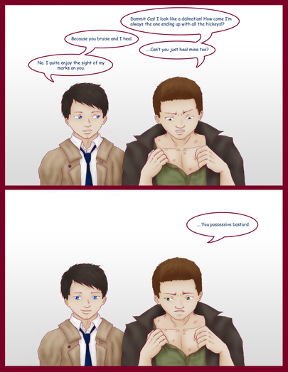 Alright! Here's my first Dean/Cas BigBang!Title: Bent