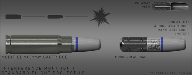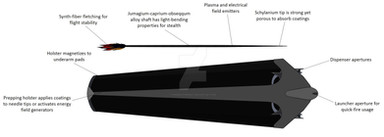 The kill vehicle or "dart" is a monoblock tungsten heavy alloy with very high Length to Diameter ratio (L/D) of 30 to help the penetrator to resist yaw induced by either sloping or Explosive Reactive Armor.