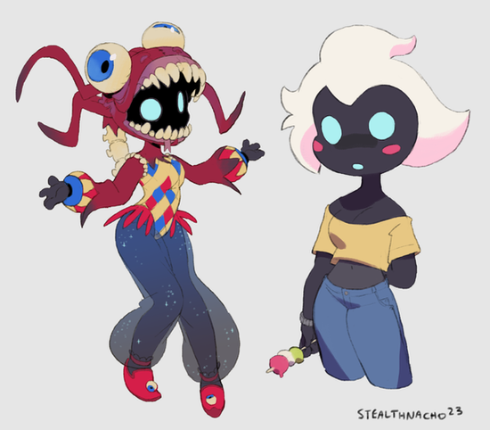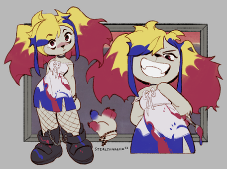 this is black rose!Β he's mostly into bubble gum pop but tolerates metal around his friends. he's mute and signs to talk (sometimes, most of the time he just gestures). black rose is also an etsy artist, witling little animals out of wood and painting them (mostly bats and bugs).this was the winner of the patreon poll for march! check out my patreon here:Β www.patreon.com/stealthnachos