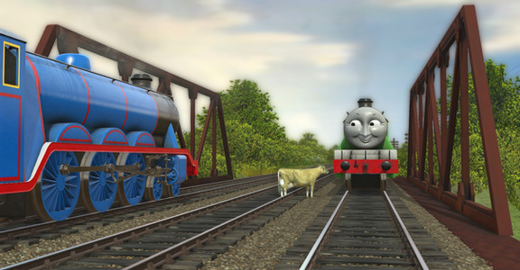 "Well, well." chuckled Edward "Two big engines afraid of a cow?"