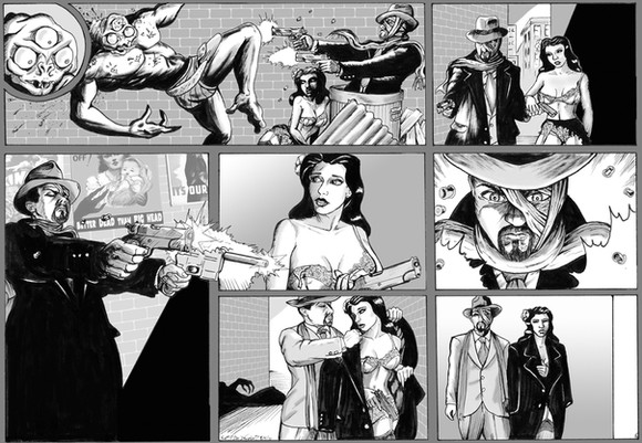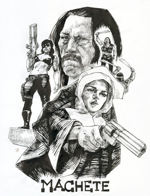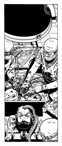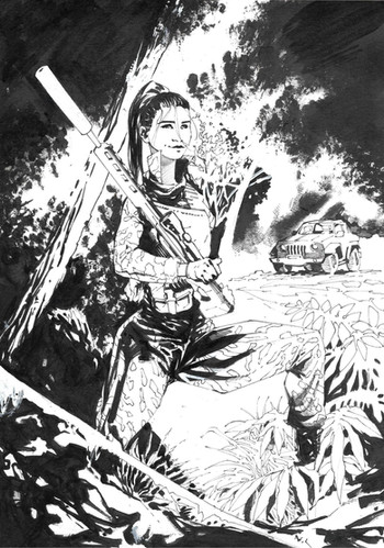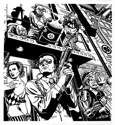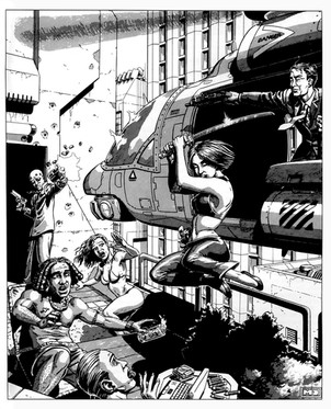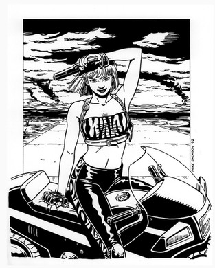 This one's a bit of a mystery. I no longer have the original, and I could've sworn I drew it for a Cyberpunk adventure in Challenge magazine, but I can't find any evidence of that now. 1992.I imagined while drawing it that the woman's ringmail was actually made of pink plastic. Would've looked pretty cool in color!