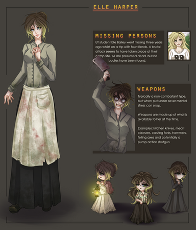 ||Experience|| I didn't have too much experience with weapons, even growing up in Texas I never really liked guns, my dad was the town sheriff and I saw and heard his tales of idiots with arsenals that I stayed clear of firearms. But I was one of the best on my highschool Ladies' softball team so I am pretty wicked with the bat.