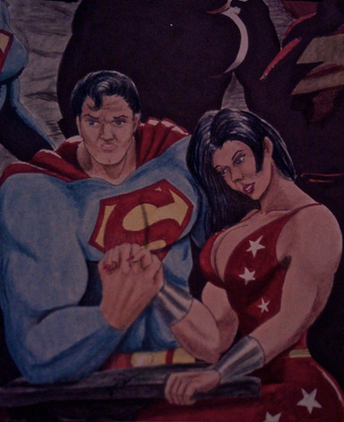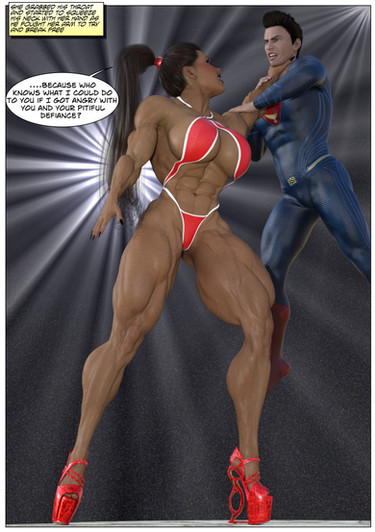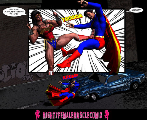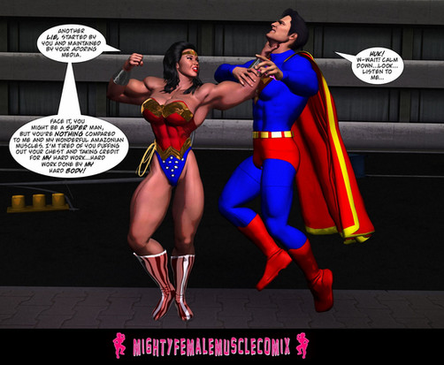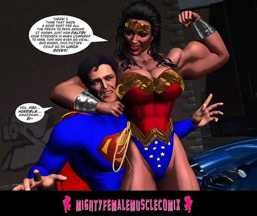 This is the cover for the newest Mighty Female Muscle Comix weekly Patreon exclusive comic. This is a really fun one as a so called super man is going to learn that he's not so super compared to a wondrous woman's Mighty Female Muscles.