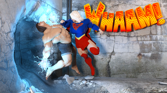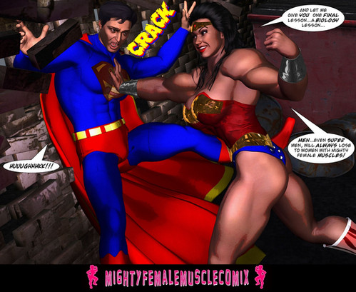 This weeks update of the superhero grudge match between a wondeful woman with mighty female muscles and a not quite as super as he thinks man... He's being shown that he might be the strongest man in the universe, but nothing beats mighty female muscles!