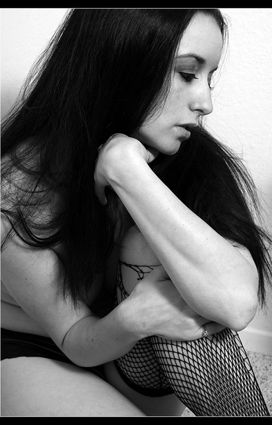 I like the angle, it's quite misleading, i thought she was laying down at first. The black and white also really suits the mood of the picture. It wouldnt work in colour.