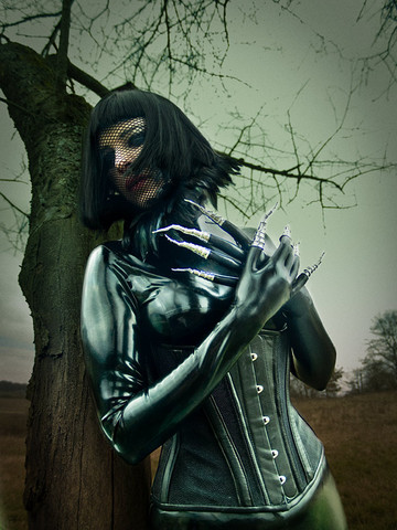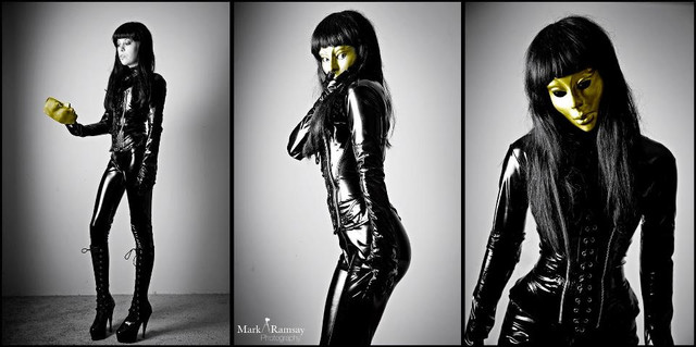 Love this, especially her face. She looks like a fetish version of Louise Brooks, especially since the picture is black and white.