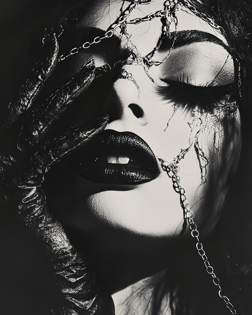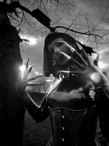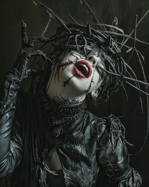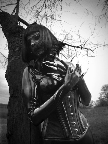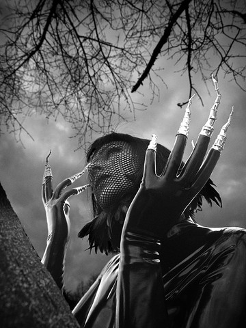 A magnificent series all around. The entirely empowered Enchantress in her eerie ebony attire and long stainless claws gives every impression of a being filled with bewitchment but perhaps completely devoid of personal emotion. So, to see the Sorceress in seductive synthetics so powerfully rake her face and scream speaks of a soul that may be as searching as all of those that she meets and greets with a lash of her nefarious nails. A most magnificent and intensely intriguing Mistress indeed unleashing her hell awakening banshee screech toward heaven.