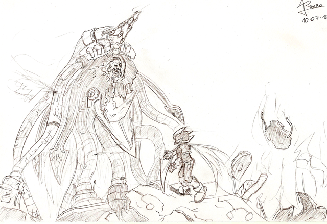 The old man snorts. "Stupid kid! I am the one who will soon be ruling your universe! I almost did with my idiot master... but that moron was stopped by children! I won't! I won't fail the same way!"