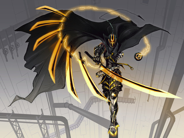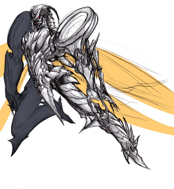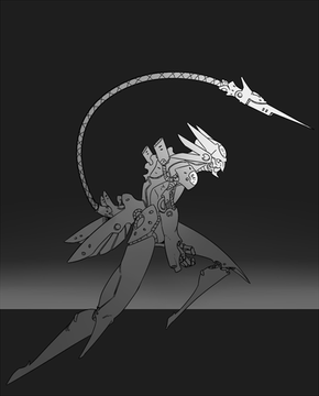 awww man *-* that creature looks incredible! asdafasd i just looove how you mixed so well an insect with a warrior with this robotic amazing stile of yours! dat pose, so cool >v<