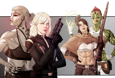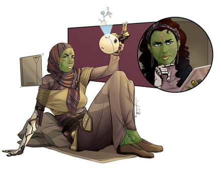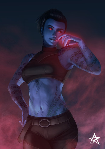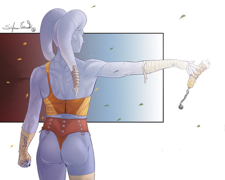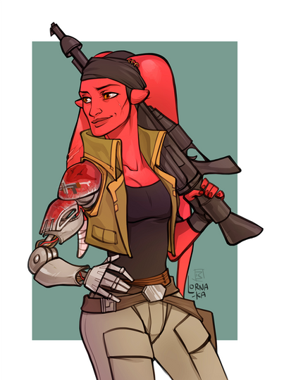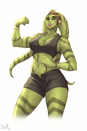 #alien #commission #female #force #green #mirialan #redhair #rogue #scifi #starwars #tattoo #stefanomarinetti #musclegirl #sixpack