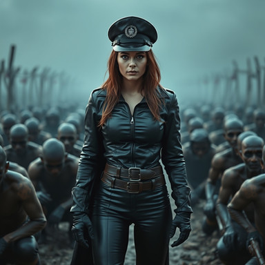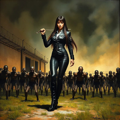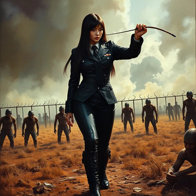#beauty #court #digitalart #digitalpainting #dominatrix #fantasyart #femaledomination #femdom #leatherboots #leatherjacket #leatherskirt #militarygirl #militaryuniform #prison #whip