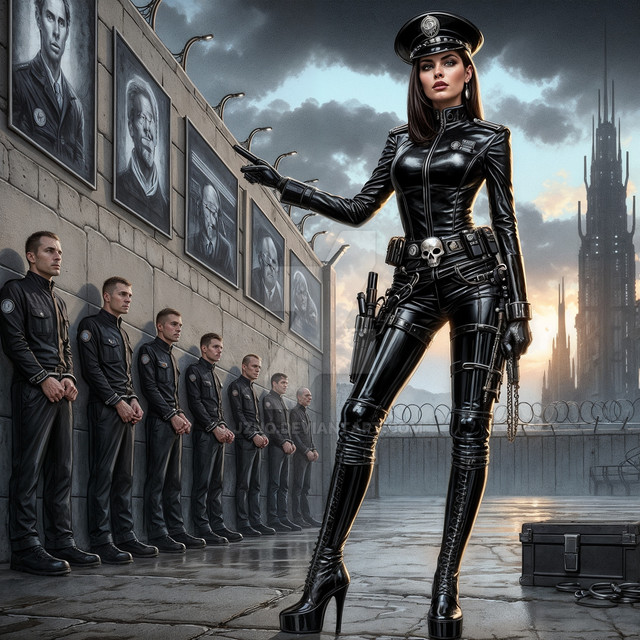 #digitalart #beauty #fantasyart #digitalpainting #militaryuniform #description #dominatrix #femdom #leatherboots #leatherjacket #leatherskirt #military #prison