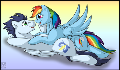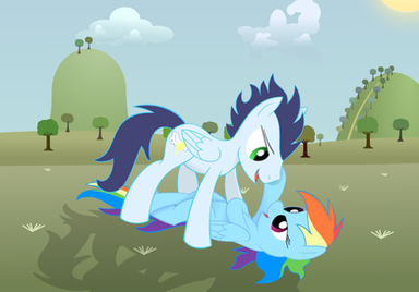 Hey guys! So this is my ship! I ship this. So hard. SOARINDASH.So this is Soarin and Rainbow Dash emulating the scene from The Lion King when Nala pins Simba down in play fight. ->[link]
