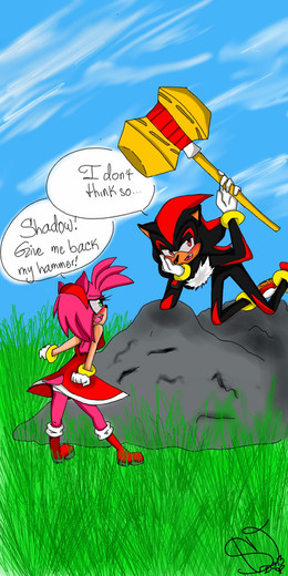Haha, sweetness, this is so cute! Maybe I should upload my pics of Sonadow. I have a lot. This be my fav pairing. Power to Sonadow! =3