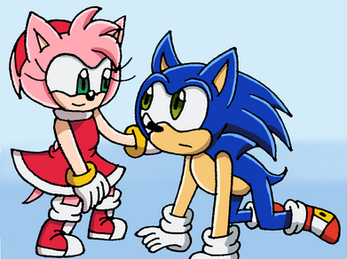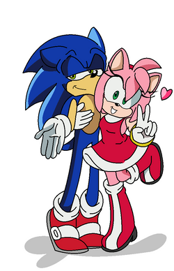 Sonic's looking to stop Eggman, while Amy's looking for Sonic's affection...LOL.