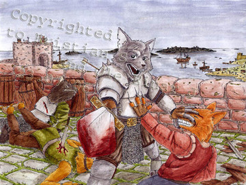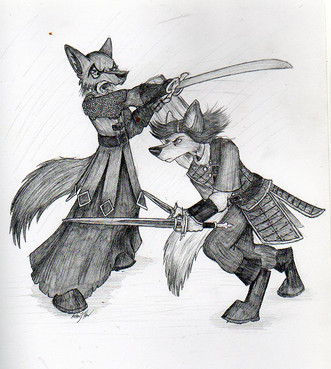 Looks good! Im only a bit baffled by the kights pose. His body is facing completly away from his opponent. It sort of looks like he took a practice swipe, and accidentaly sliced someone behind him. Or something. Bah, I dont know much about swiping poses anyway.