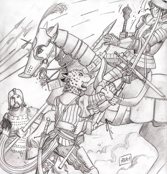 Wow it's great to see some more fantasy stuff from you ! I just can't wait for colored version, i'm sure it'll be awesome ! Well the second knight will definitely need some painkillers