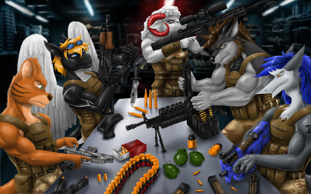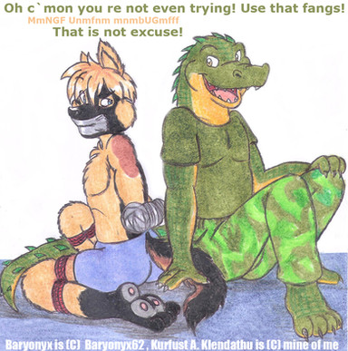 #anthro #bandana #bondage #bound #captured #coyote #dragon #gagged #humor #mercenaries #military #prisoners #soldier #tied #up #wolf