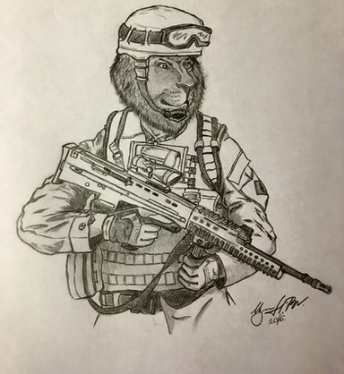 and yet I somehow managed to finish yet another soldier sketch for the Rebel Vs Soldier project.The tiger is 's character who is a soldier from the Irish special forces. I'm not quite pleased with how the muzzle came out since the angle of the muzzle (wich is tilting downward) doesn't quite fit the angle of the eyes.. thus making the shemagh mask looking rather odd